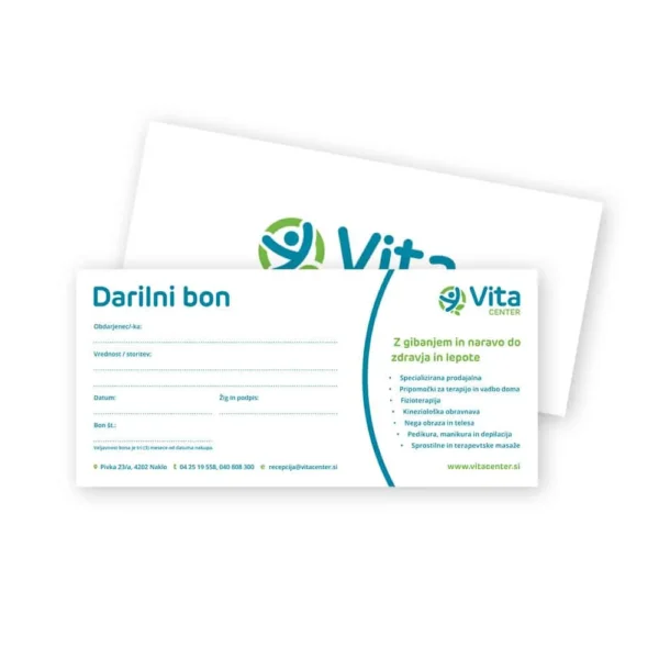 Darilni bon Vita centra je možno kupiti fizično tudi na naši lokaciji v Naklem pri Kranju.