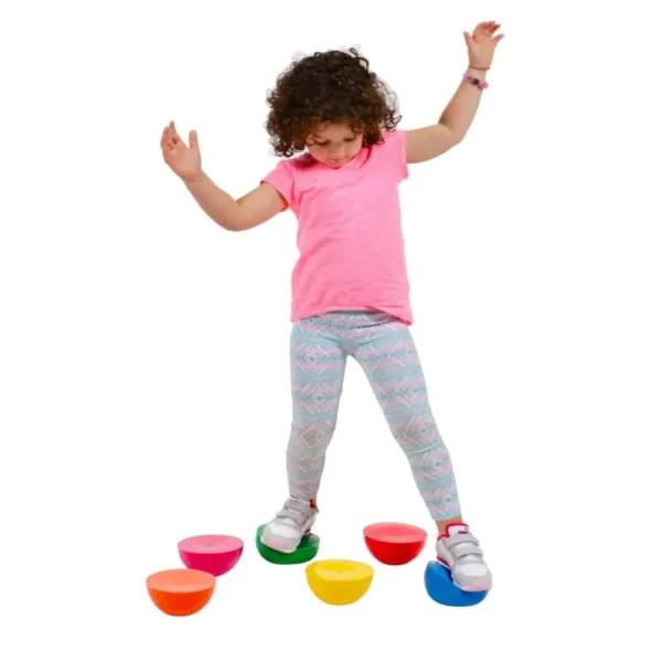 Polkrogle Junior Stones so idealen pripomoček za razvoj ravnotežja in propriocepcije ter lahko uporabljajo za razne igre v skupinah in ustvarjanje poti zahvaljujoč izbranim barvam. Prodaja na kos.