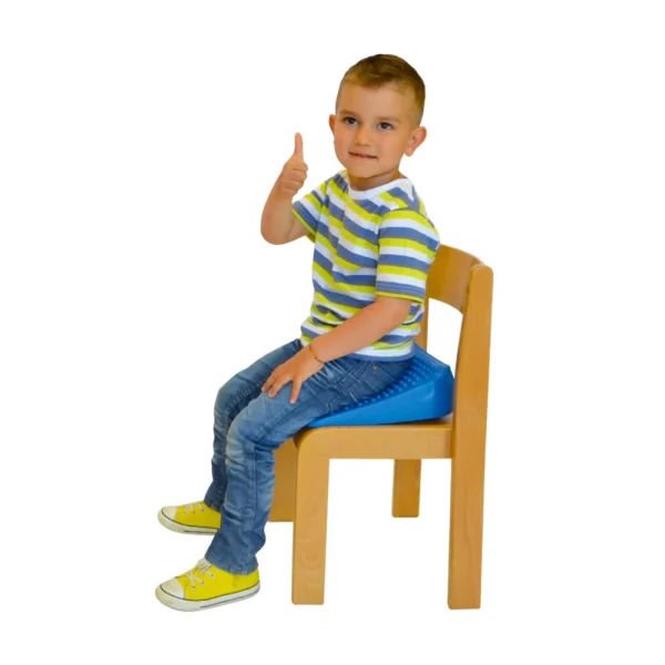 Namenjena je otrokom, je tudi mehkejša od večje različice ter se odlično prilega majhnim stolom vrtcev in osnovnih šol. Sedežna klin blazina Movin' Sit Jr. pomaga otrokom ohranjati pravilno držo z dinamičnim sedenjem. Posledično se bosta otrokova zavest in osredotočenost med učenjem izboljšali. Z napihovanjem lahko prilagodite stabilnost izdelka.