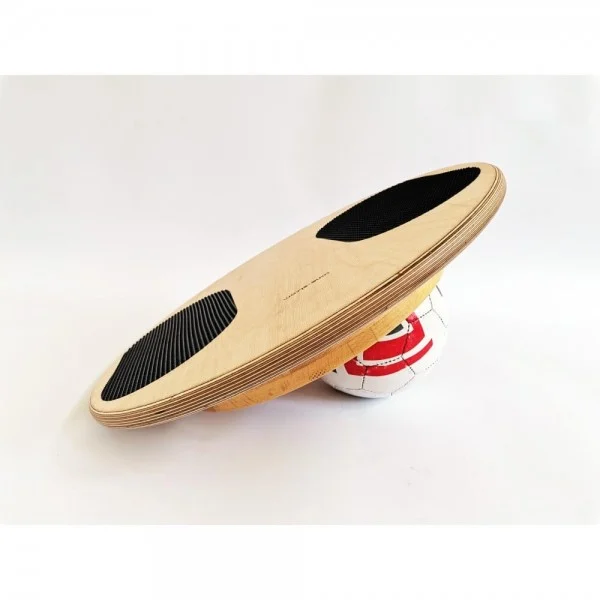 Osnovne ploskve ravnotežnih desk so izdelane iz vezane plošče, ki zagotavlja ustrezno trdnost in daje izdelku posebno estetsko vrednost. Za površine polkrogel, ki so pri vadbi v stiku s podlago, smo izbrali bukov les, ostali del polkrogel je sestavljen iz segmentno lepljenega smrekovega lesa. Ta sestava daje izdelku večjo obstojnost. Stojna površina je obdana z nedrsečo gumo, ki je enostavna za vzdrževanje. Robovi desk so zaobljeni, vse lesene površine so lakirane s kakovostnim dvokomponentnim lakom.